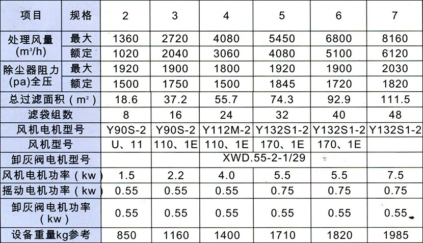 (1)箱體:包括袋室、凈氣室、多孔板、濾袋、濾袋骨架、檢修門、箱體設計耐壓5000Pa。